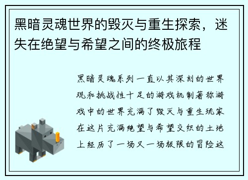 《死神游戏:探索生死边界的冒险与抉择,揭开命运背后的终极秘密》是一款结合了心理探险与生死哲学的互动式游戏。玩家在游戏中将面临无数的选择和抉择,究竟是接受死亡,还是挣扎求生?游戏的故事情节充满了对生死界限的探索,同时也揭示了命运与选择之间的深刻关系。游戏不仅是一场对心灵的试炼,也是在每一次决定时探讨生...